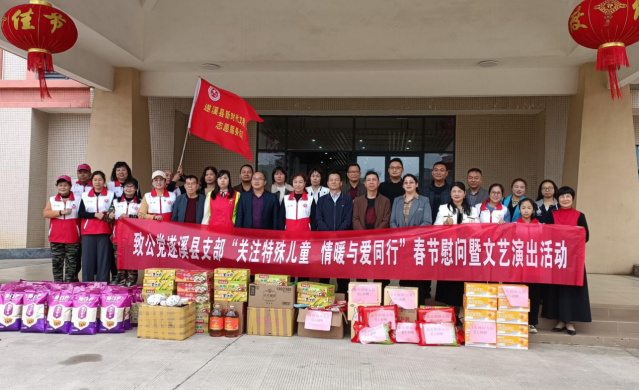 参加活动人员合影 2月2日,致公党湛江市遂溪县支部联合多个单位在遂溪县福利院开展“关注特殊儿童 情暖与爱同行”春节慰问暨文艺演出活动,并向福利院捐赠慰问金和爱心物资。致公党遂溪县支部主委、遂溪县文化广电旅游体育局副局长谢白玉以及支部党员参加了活动。