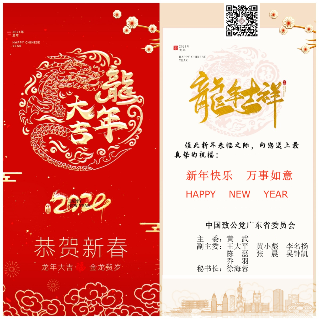 龙年好景福禄传,辞岁迎新万象更。值此中华民族传统节日甲辰龙年新春佳节来临之际,中国致公党广东省委员会向您及家人朋友致以最诚挚的问候和最美好的祝愿!